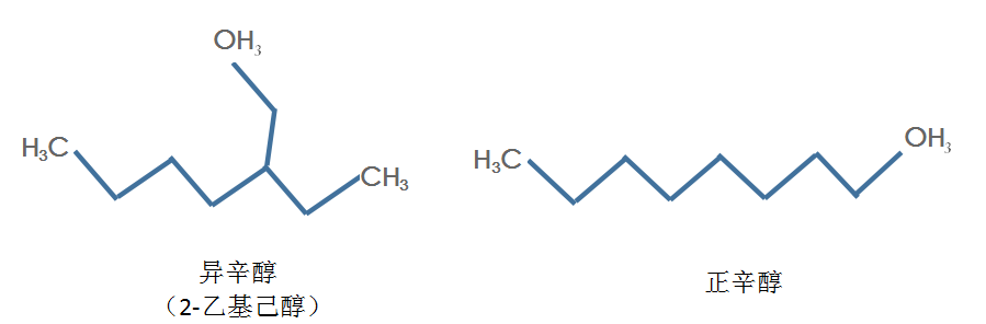 從字面上較容易區(qū)分的是異辛醇與正辛醇,正異不同,因此各自代表的物質(zhì)也不同。從分子結(jié)構(gòu)上來說,由于功能鍵所在碳鏈位置不同,二者有了正異之分,屬于同分異構(gòu)體。