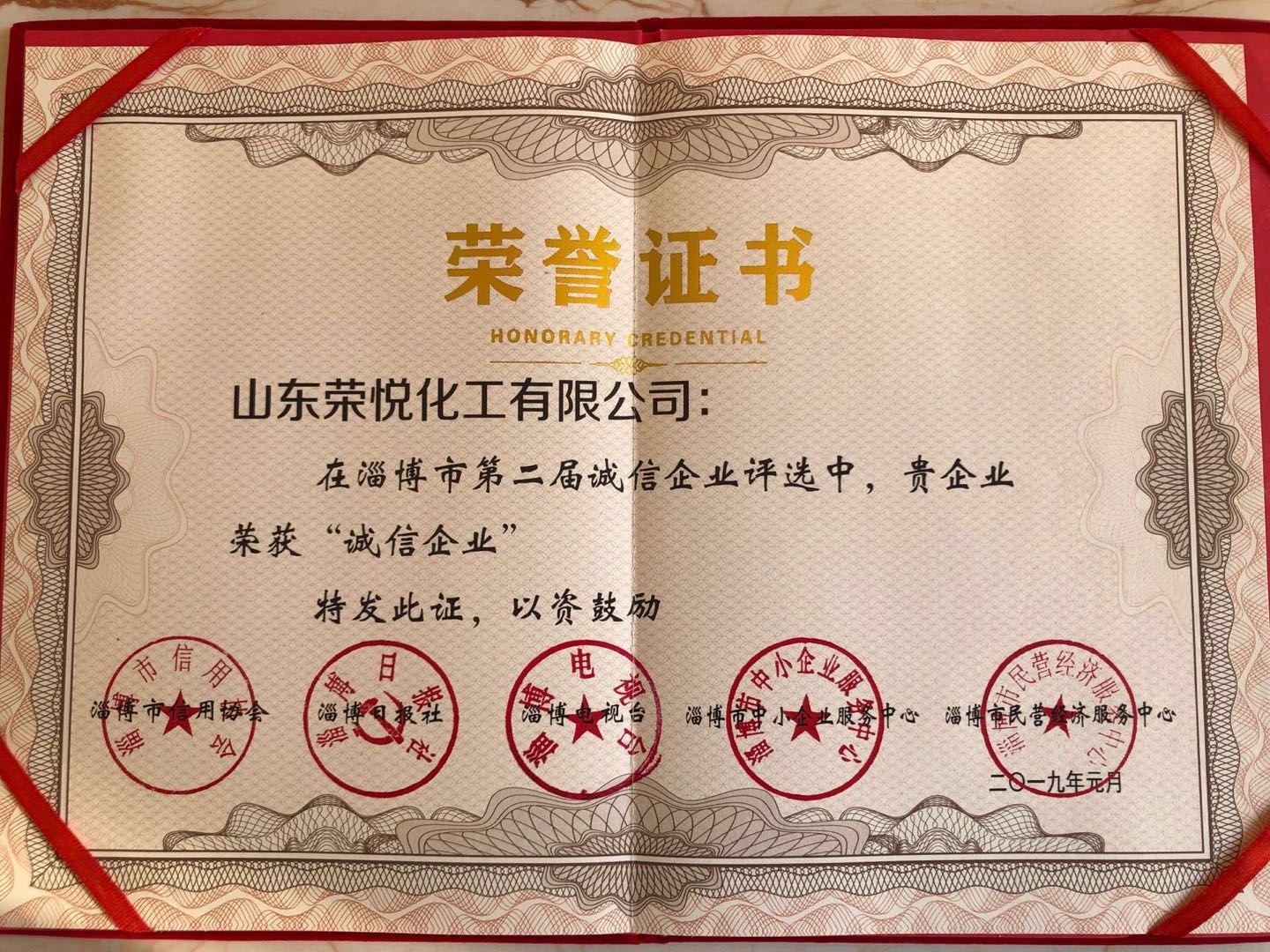 熱烈祝賀山東榮悅化工有限公司被評為誠信企業(yè)!